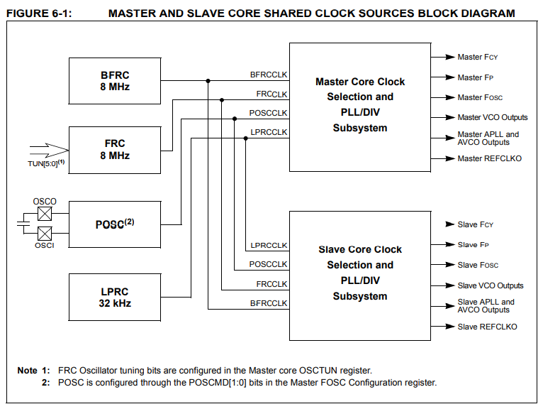 FCY = (FPLLO / 2) / 2 (DOZE disabled)